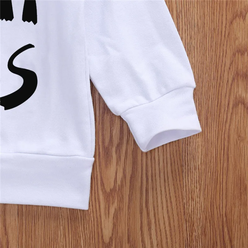 Повседневный свитер для маленьких мальчиков и девочек, хлопковый базовый пуловер с длинными рукавами и круглым вырезом, с принтом в виде букв, с Подшитым подолом и манжетами для весны и осени