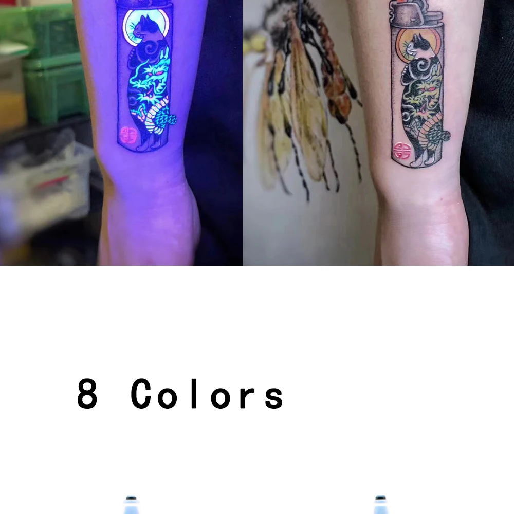 Опытный художник будет использовать чернила black светильник для украшения обычных татуировок, которые не повлияют на нормальную артистичность, и представит более захватывающие и увлекательные эффекты под черсветильник Том.