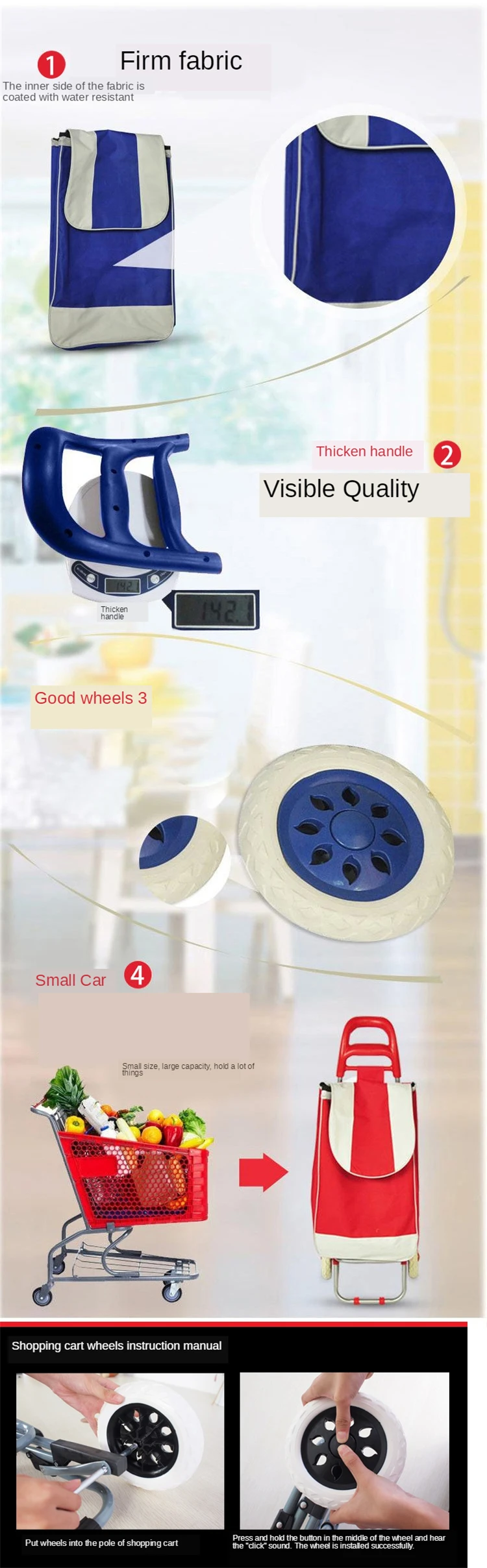 B-LIFE Тележка для покупок с колесами для лестничных подъемников 2 в 1 складной продуктовый мешок с большой съемной ручкой