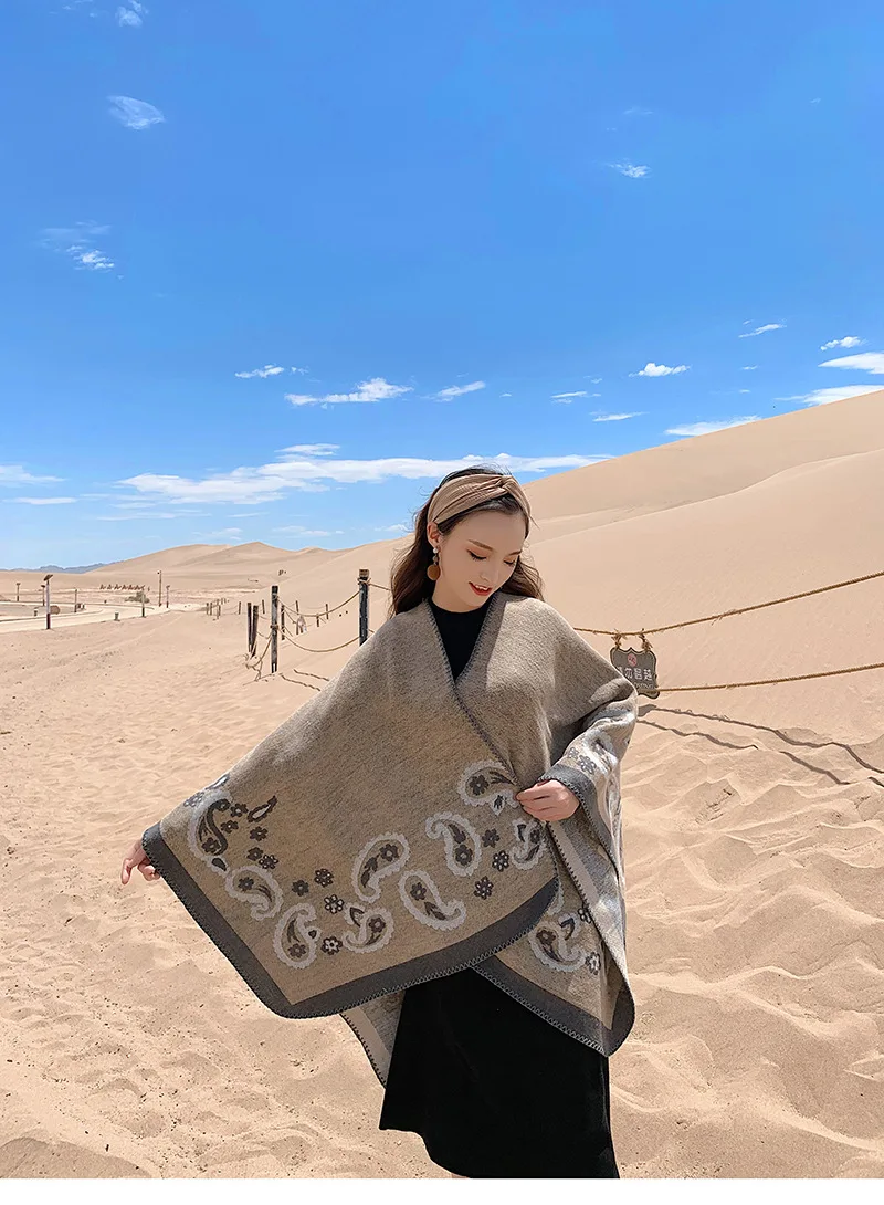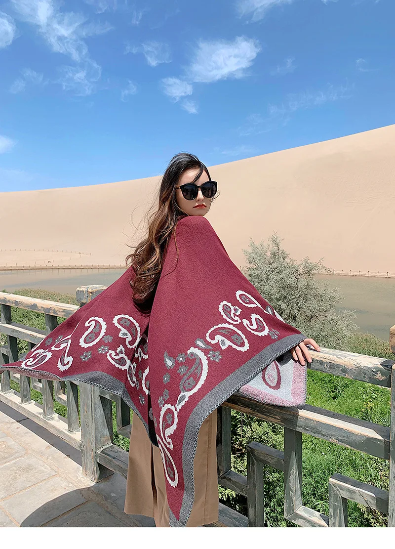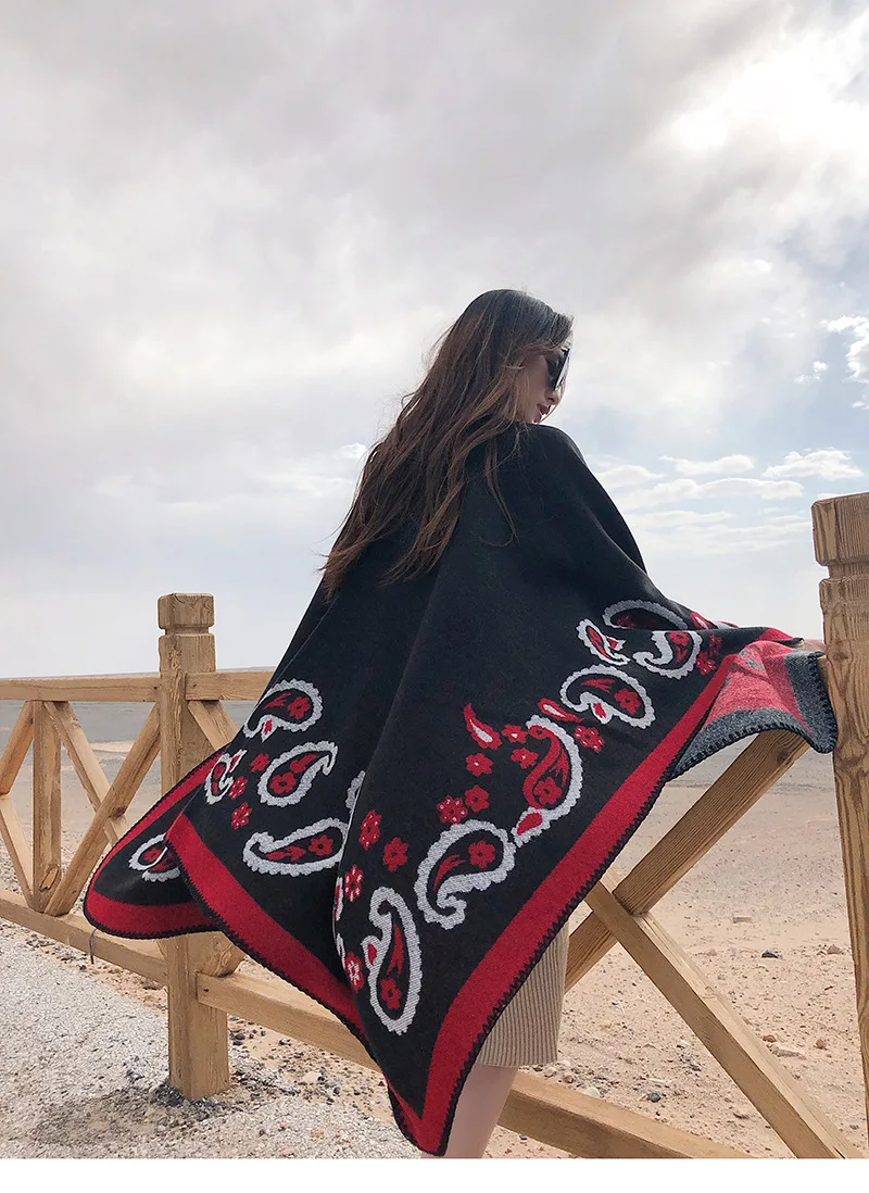 Новый зимний теплый кашемировый шарф-пончо, Женская шаль из пашмины, ретро шаль с принтом кешью, национальное одеяло, шарфы, женский кардиган, накидка