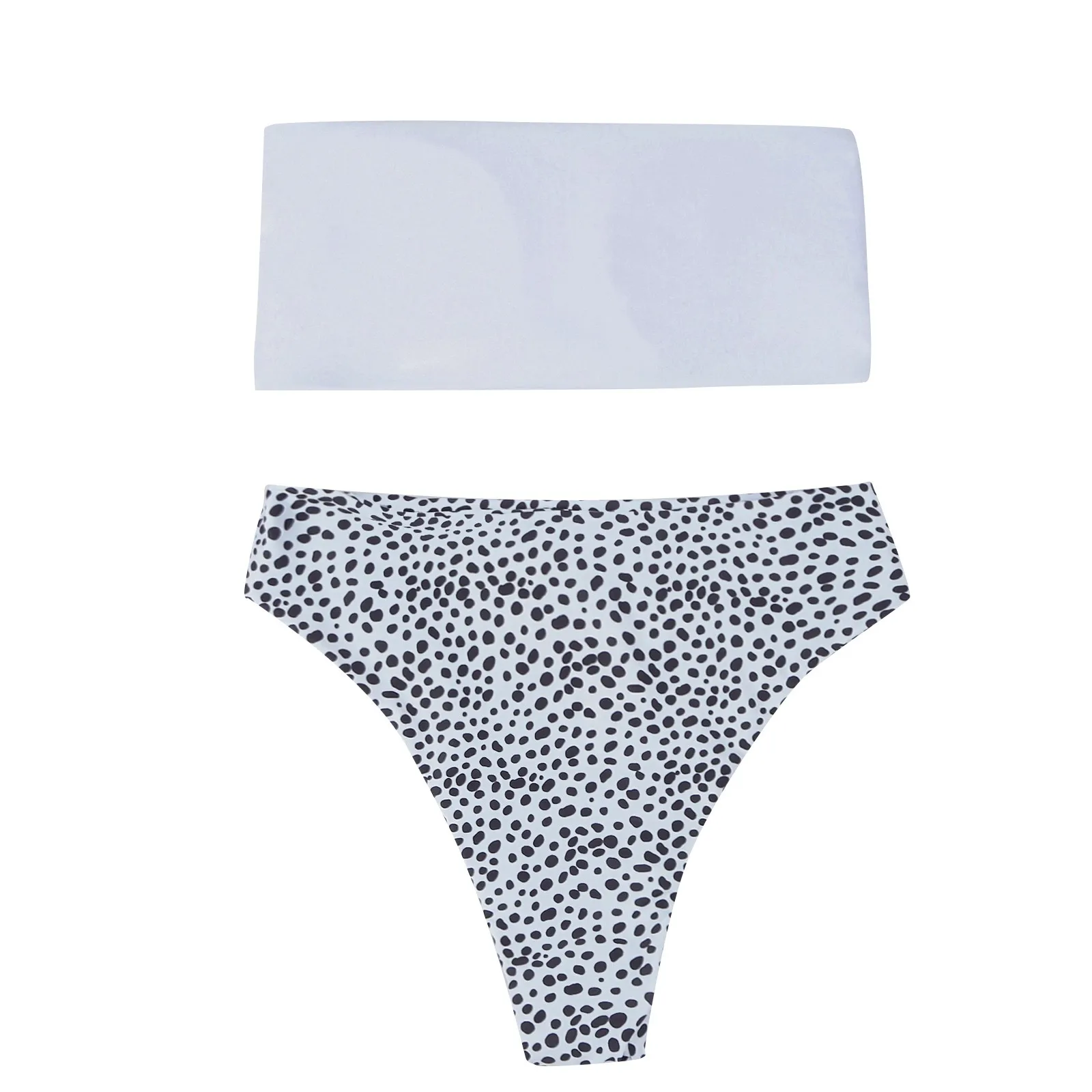 Купальник-бикини с высокой талией и разрезом в черный горошек