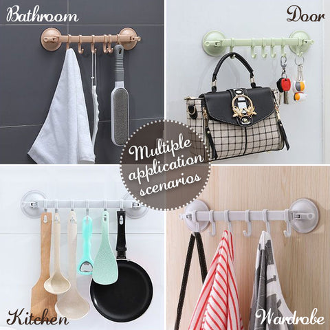 6 крючков с сильным всасыванием:Конструкция чашки и замка, сильная адсорбционная сила, хороший Подшипник нагрузки, 6 крючков могут быть установлены на стене, могут быть перемещены вокруг. Вакуумная двойная присоска, сильная присоска может выдерживать около 3-5 кг.