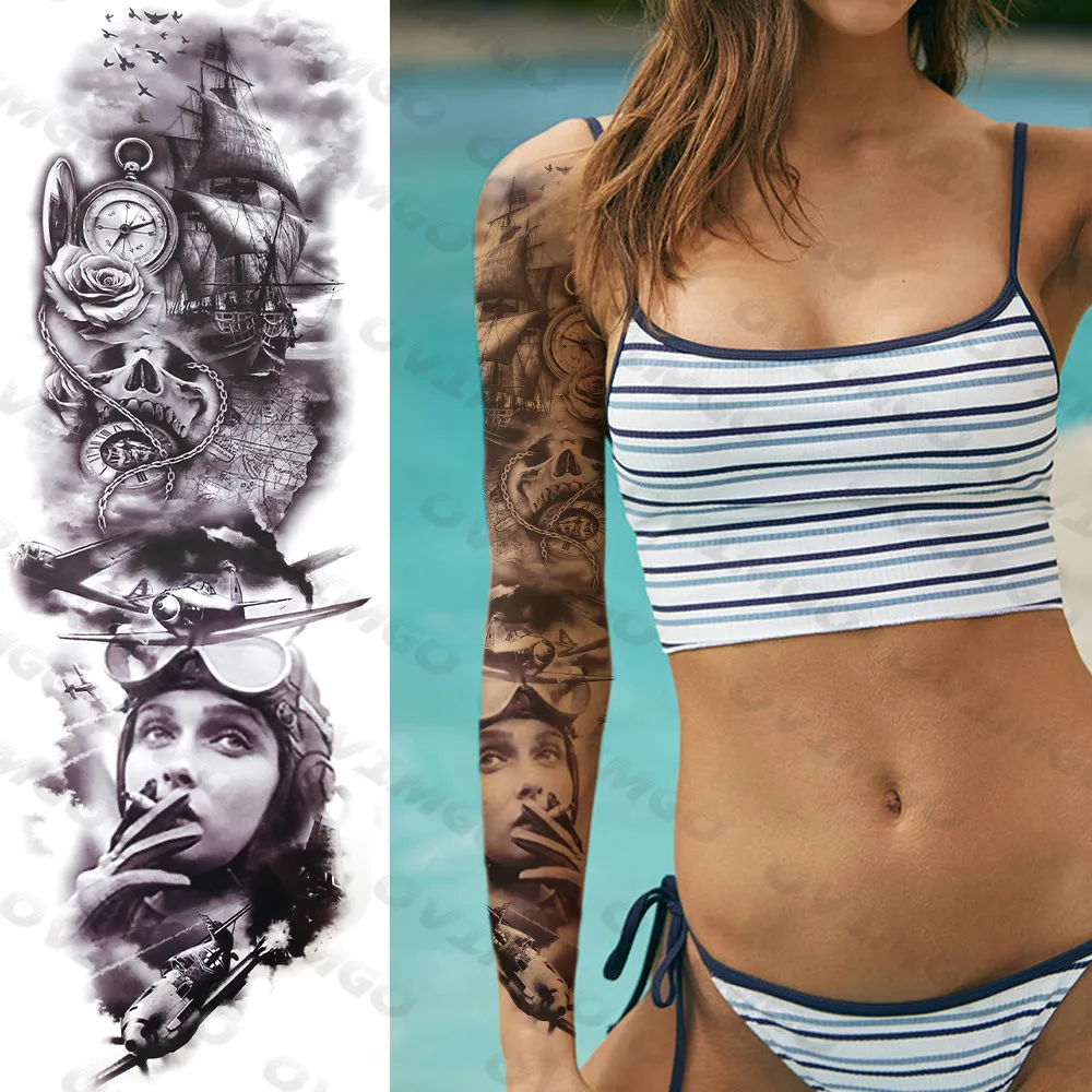 Временные рукава с татуировками в стиле римского льва, Бог, для мужчин и женщин, для мужчин, реалистичные, поддельные, пилотные, Самурайские, Гангстерские, тату-наклейки на всю руку