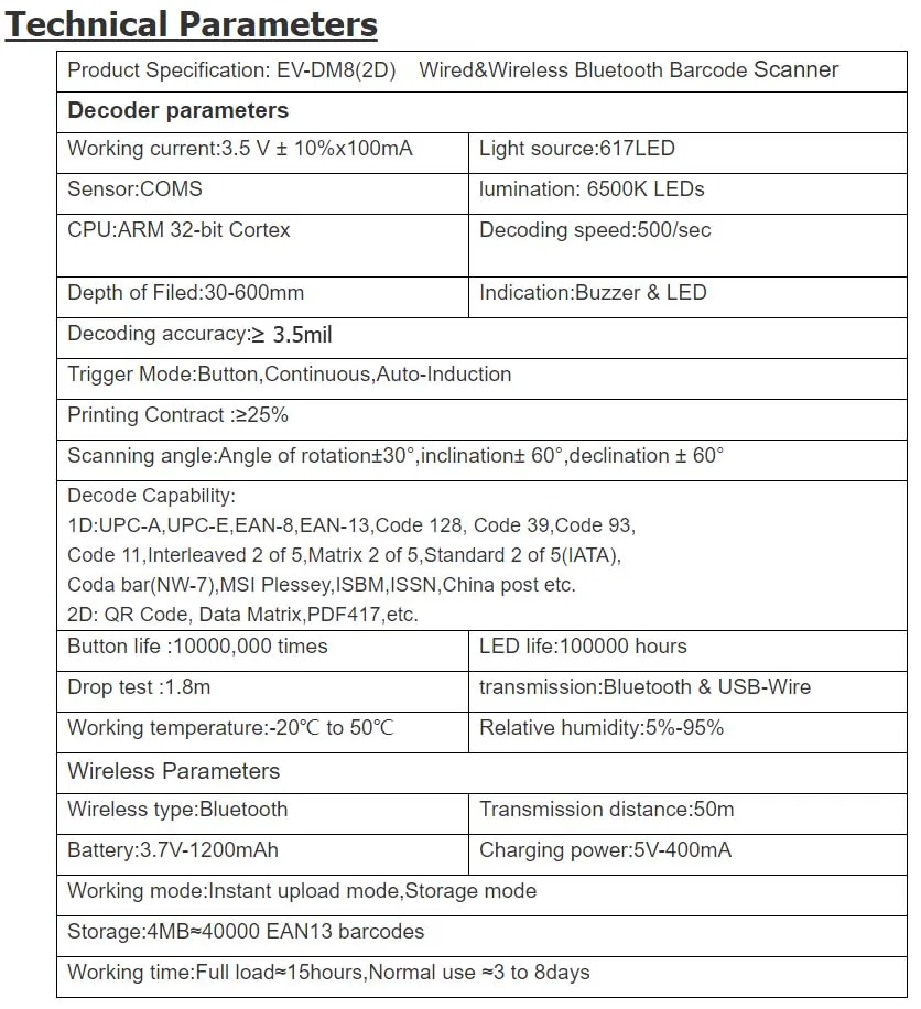 * Стандартный список: сканер * 1, кабель * 1, руководство * 1, коробка * 1