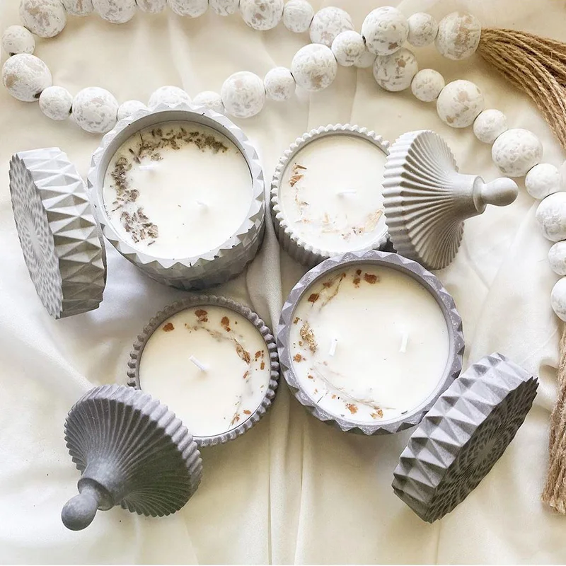 Бетонный сосуд для свечей с крышкой форма для цемента банка для хранения силиконовая форма для бетона круглая банка для свечей