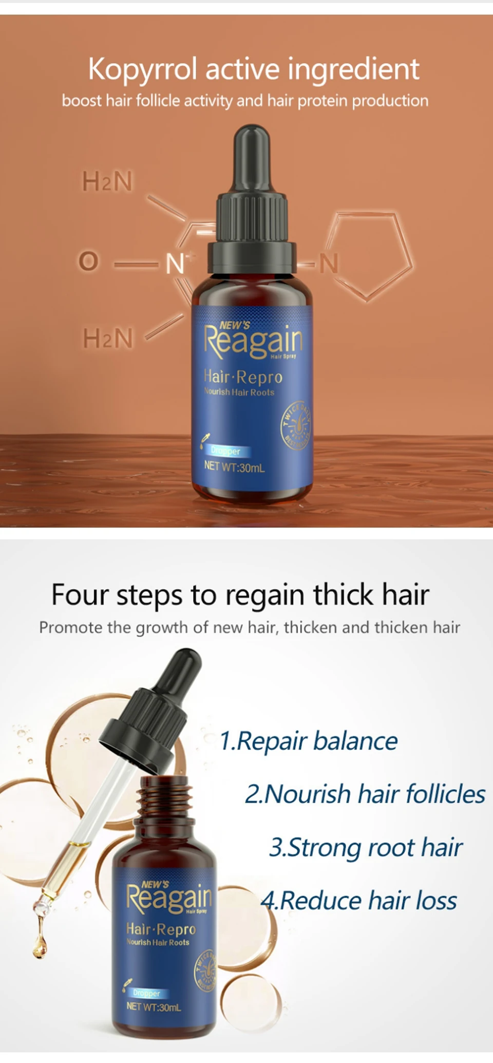 Два раза в день, для достижения наилучших результатов, пожалуйста, используйте 1-2 мл эссенции (около 2-4 капель), непосредственно используется в меньших волосах, без волос части головы, помощь в росте волос; Увеличение количества использования или использование не может привести к лучшему использованию; Согласно инструкции, Каждая бутылка используется для не менее 25-30 дней, может эффективно уменьшить выпадение волос и выпадение волос.
