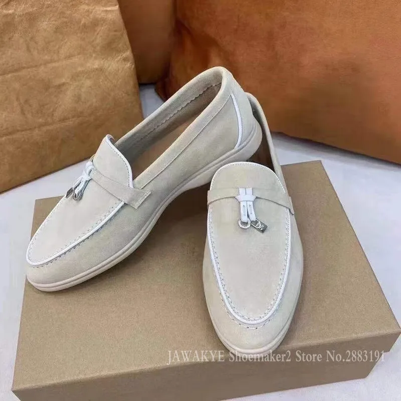 Новое поступление; Женские лоферы на белой подошве; Кожаная обувь с кисточками и объемным шитьем; Летняя прогулочная обувь; Замшевые туфли на плоской подошве с круглым носком