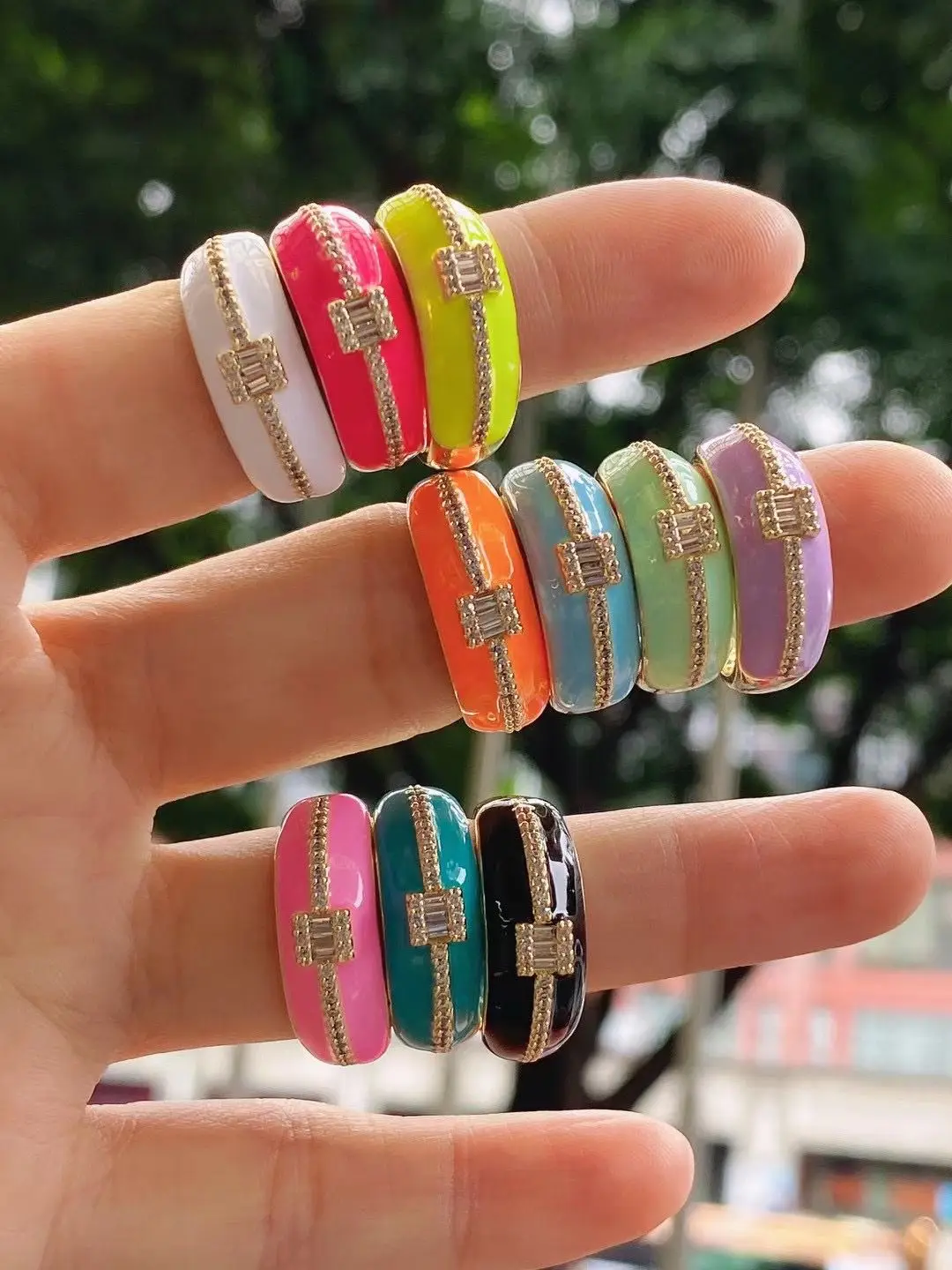Неоновые эмалевые Искрящиеся CZ кольца на палец великолепные кубические циркония модные женские летние украшения