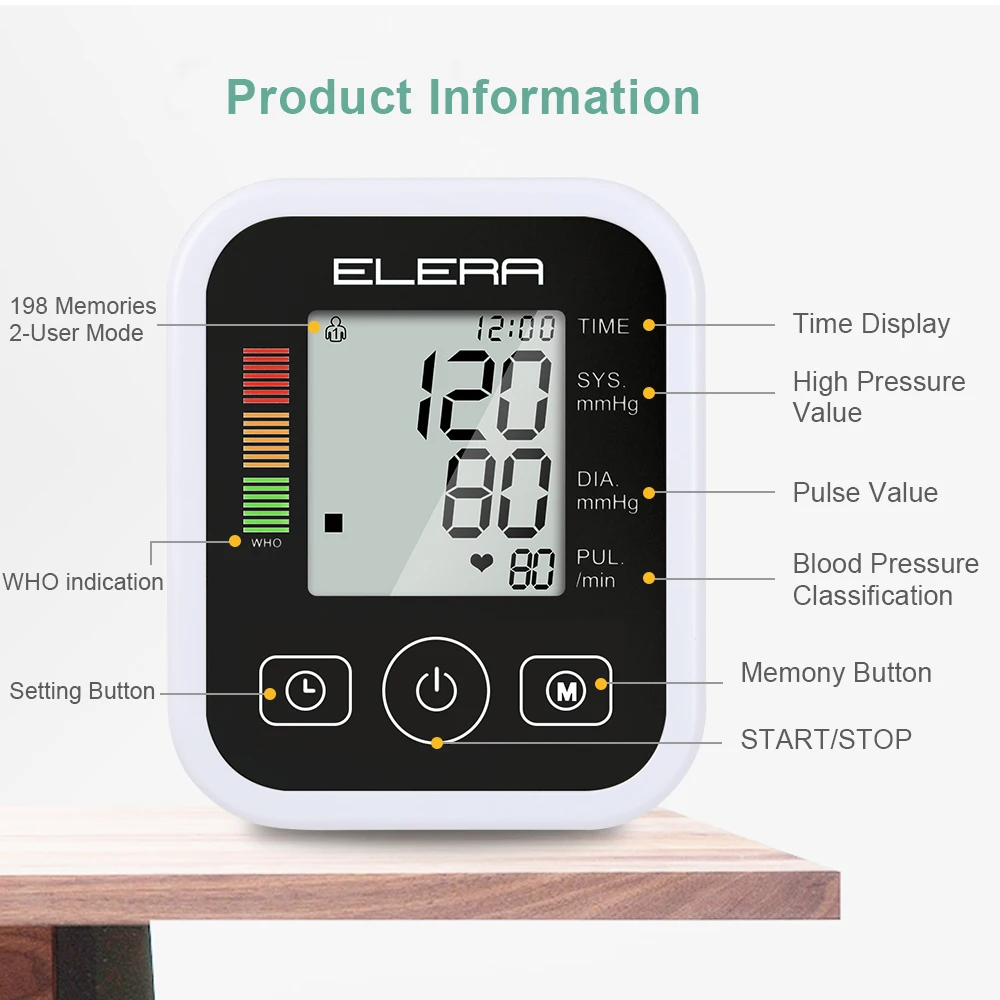 -Гарантия качества, рекомендованная профессиональными врачами, проста в эксплуатации -Большой экран показывает, удобно для пожилых людей -- 22-46 см. Даже сильные люди могут использовать большие манжеты -- 2X99 данные памяти для легкого мониторинга колебаний артериального давления -- Два способа зарядки: USB DC 6V или 4 AAA батареи -- Напоминание о нерегулярном импульсе Внимание: Все заказы не включают адаптер