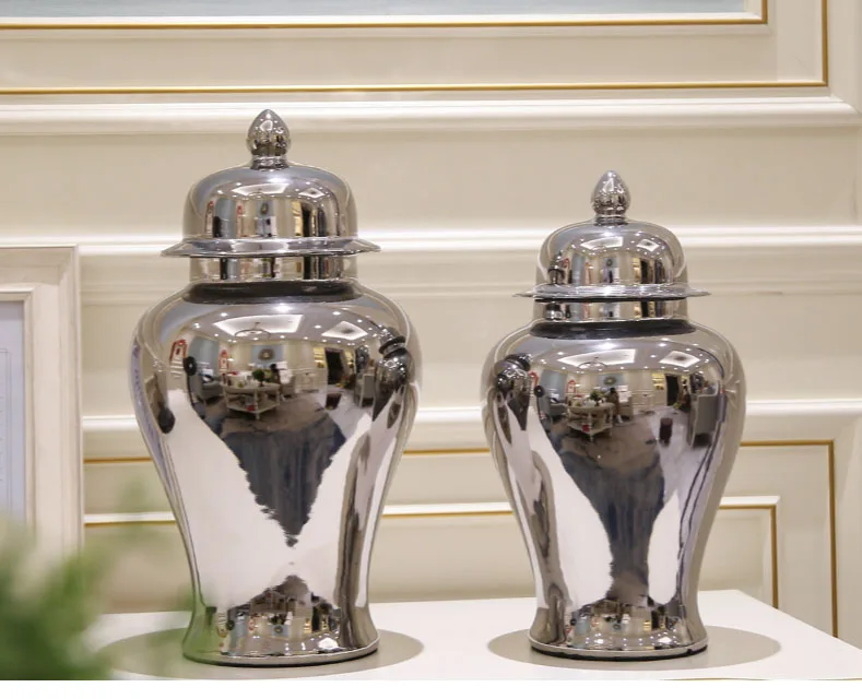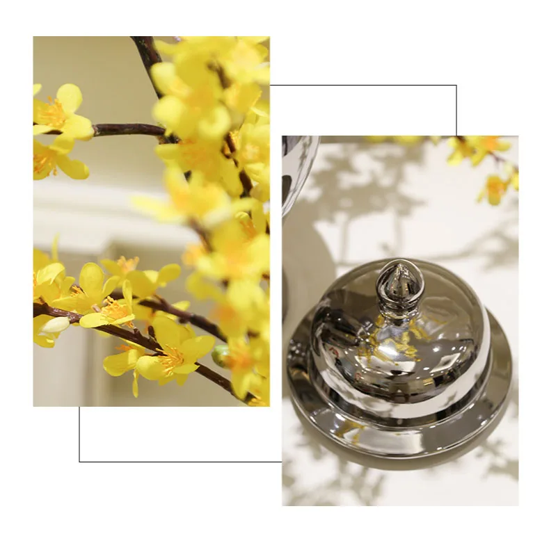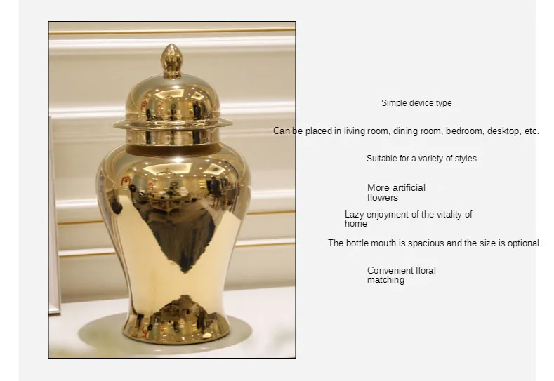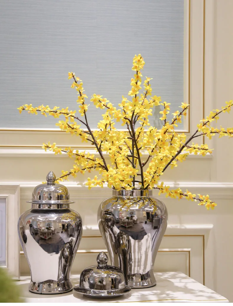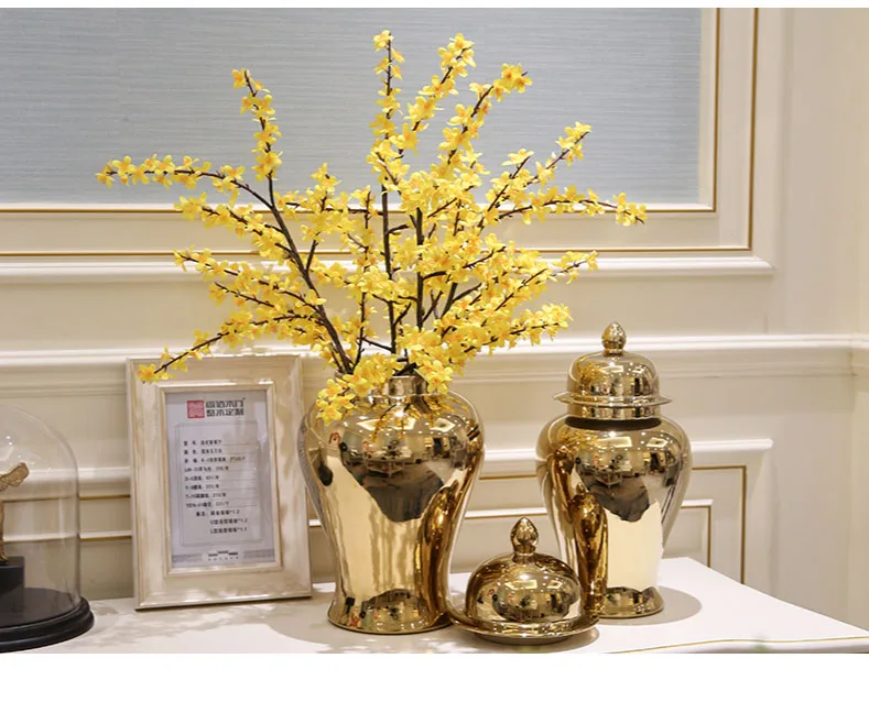 Современные роскошные Имбирные банки Позолоченные китайские ваза с крышкой ваза храмовый сосуд керамические декоративные настольные цветочные вазы Центровой части