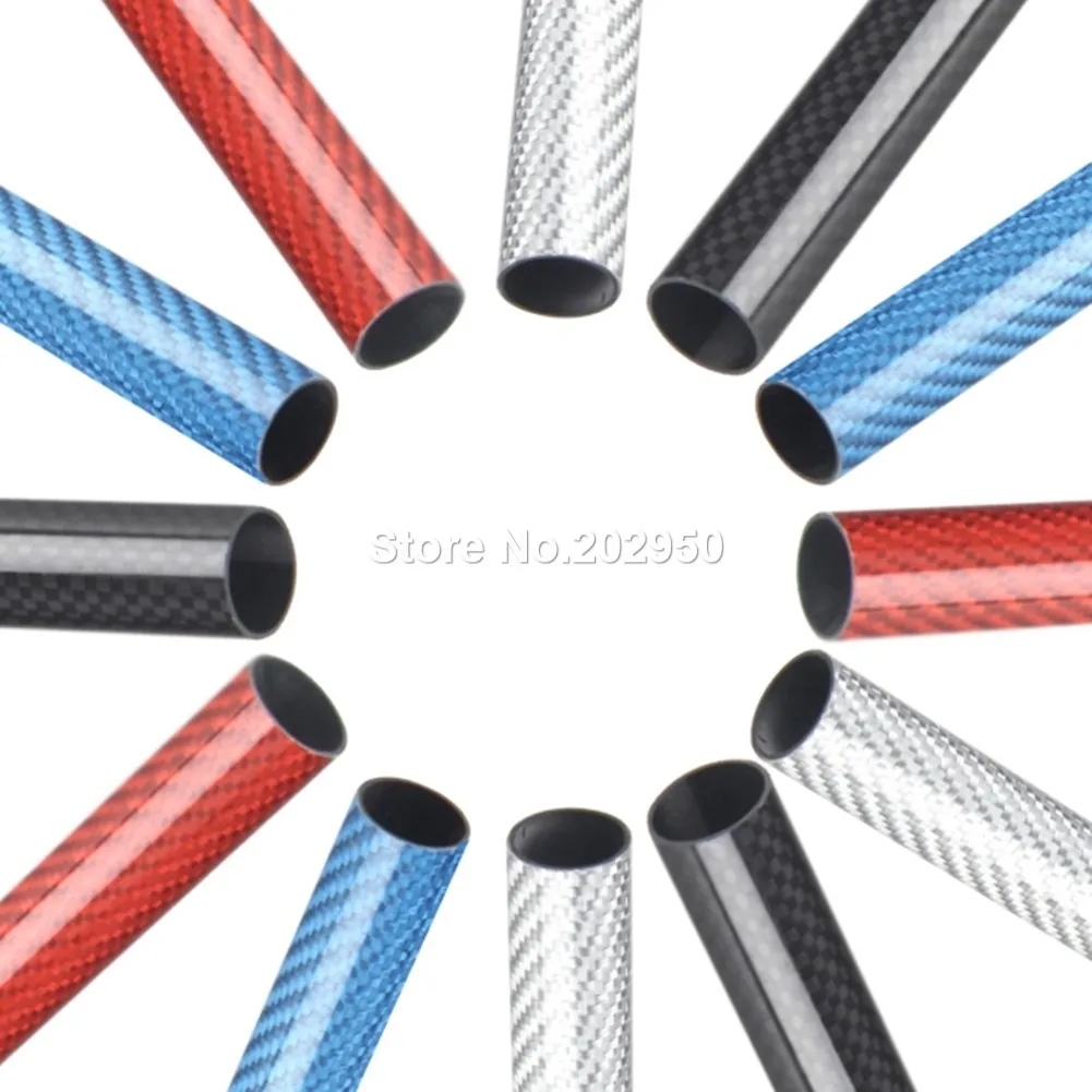 Цветная круглая трубка из углеродного волокна 3K с глянцевой поверхностью OD 6 мм 8 мм 10 мм 12 мм 16 мм 18 мм 20 мм длина 500 мм