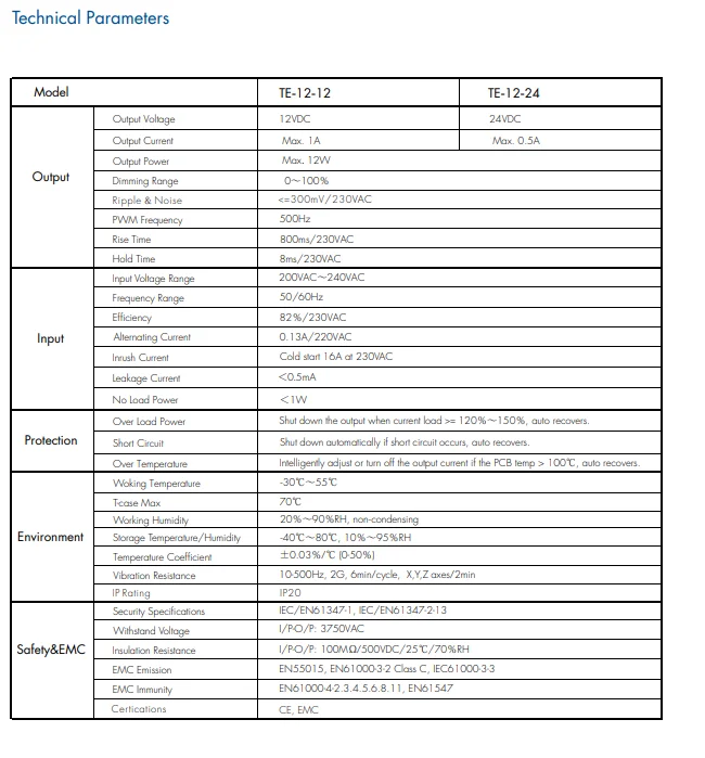 ELV Triac постоянное напряжение 12VDC или 24VDC 12W Светодиодный драйвер 200VAC-220VAC вход для офиса/коммерческого/внутреннего освещения, отелей