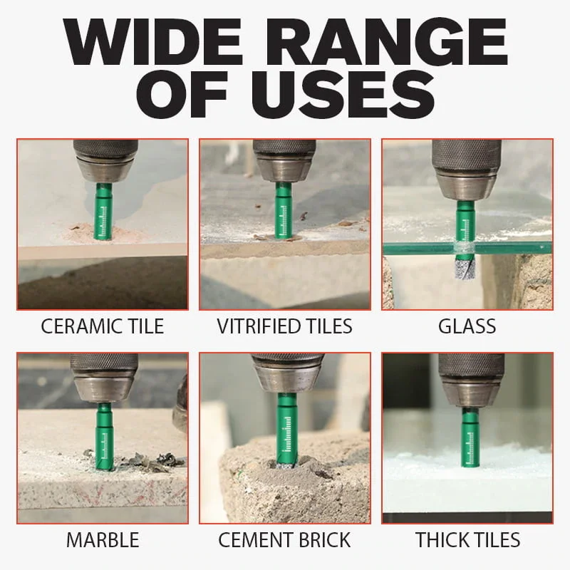 Наборы включают общие размеры и идеально подходят для домашнего и профессионального использования. Широко используется для перфорации керамической плитки, стекловолокна, стекла, керамики, мрамора, гранита, микрокристаллического камня и кварцевого камня.