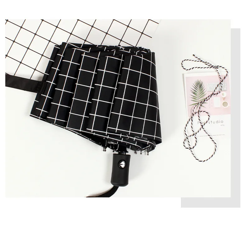 Fully Automatic Plaid Sun Umbrella 2021 Fashion Summer UV Folding Umbrel Sombrilla