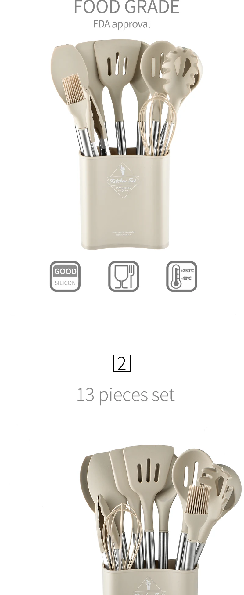 Силиконовый набор посуды-помощник для кухни, идеально подходит для всех типов продуктов, а также для приготовления пищи и кухонных принадлежностей, для жарки, перемешивания крема, масла, мороженого и т. д. Включает лопатку, кисть для набивки, острый шпатель, токарь с закругленными краями, ковш, токарь с прямыми краями, ложку, щипцы, вилку для пасты и идеально подходит для всех типов продуктов и приготовления пищи.