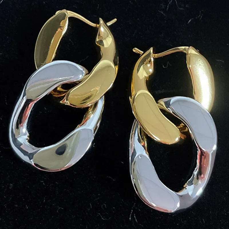 Женские серьги золотистого и серебристого цвета с цепочкой, двухцветные контрастные Роскошные брендовые дизайнерские висячие серьги dupl в уличном стиле