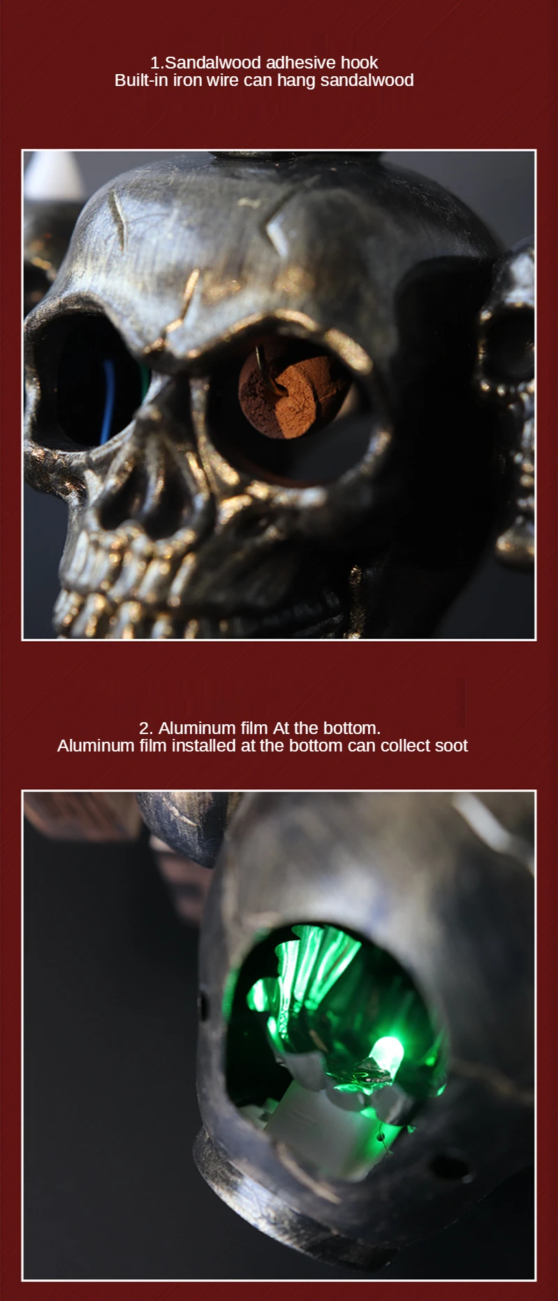 Упаковочный лист: 1 шт. * + лампа с черепом + 1 шт. * Пинцет + 3 шт. * сандаловое дерево