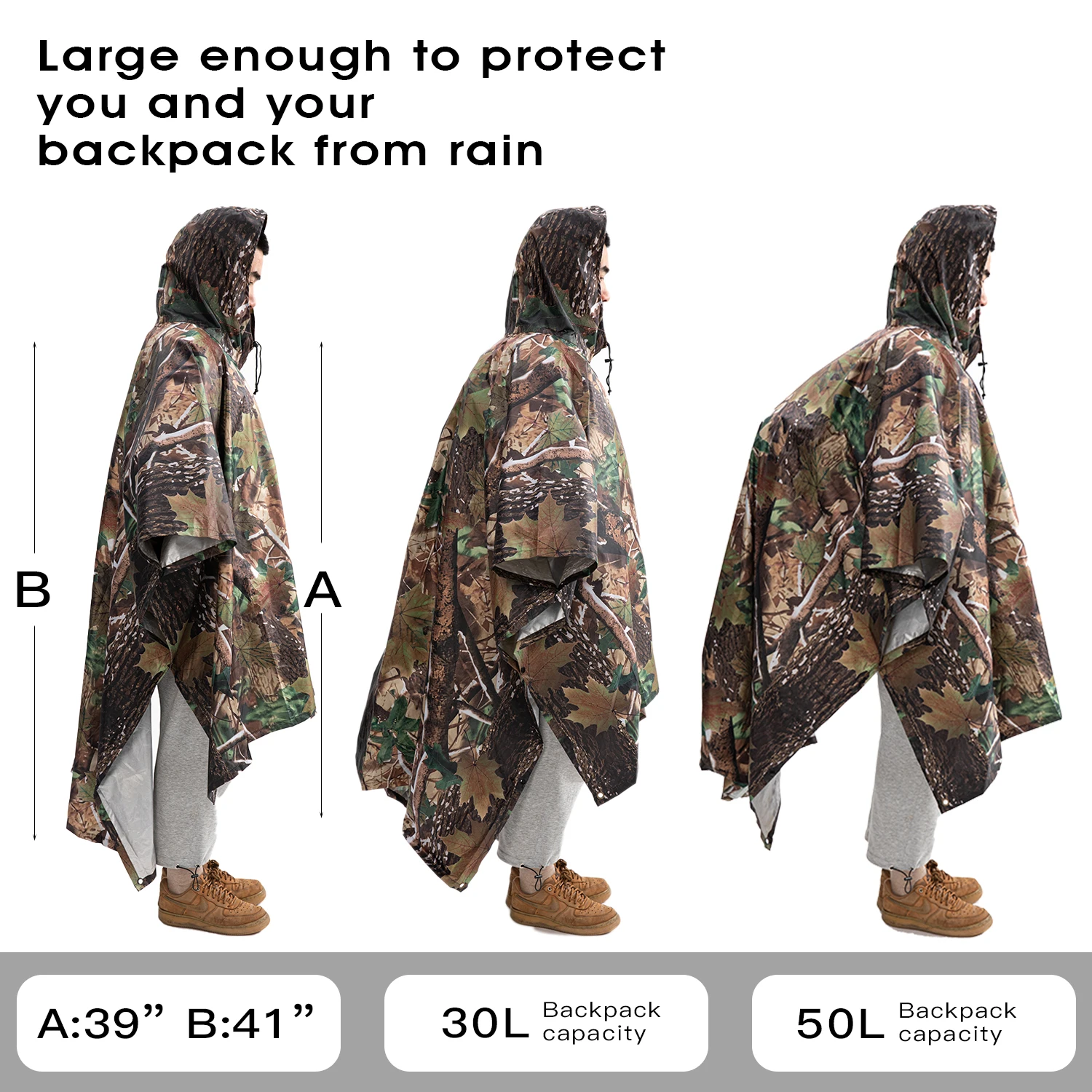 3 в 1, пончо для пеших прогулок, дождевик, рюкзак, Водонепроницаемый брезент с капюшоном, охотничье пончо, уличная палатка, коврик, тент, укрытие
