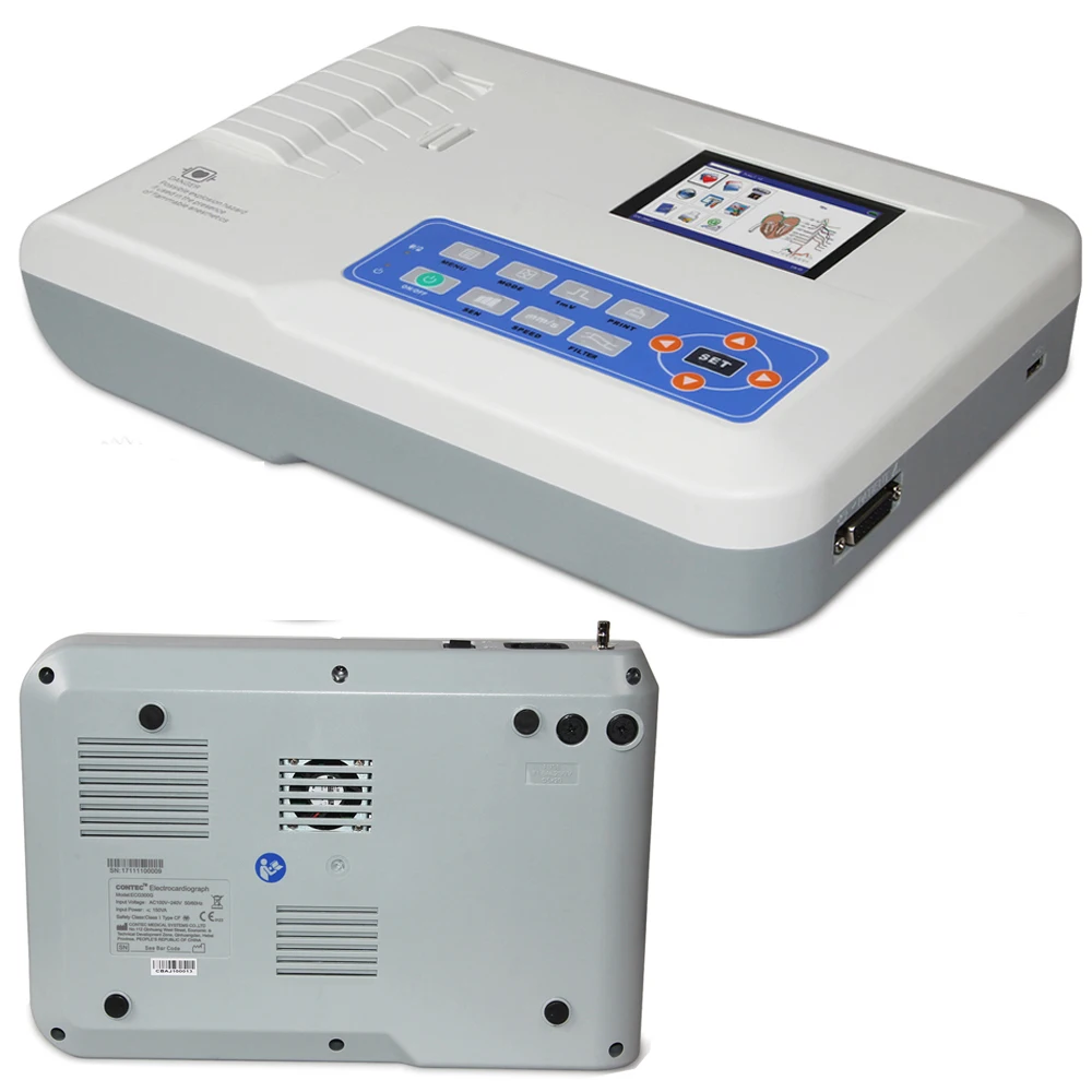 4) с функциями автоматического анализа и автоматической диагностики для стандартных параметров ЭКГ, обеспечивают результаты измерений и вывод автоматической диагностики для HR, интервала P-R, P длительности, длительности QRS, длительность T, интервал Q-T, Q-Tc, ось P, ось QRS, ось T, R(V5), S(V1), R(V5)+ S(V1), И т. Д., что снижает нагрузку на доктора.