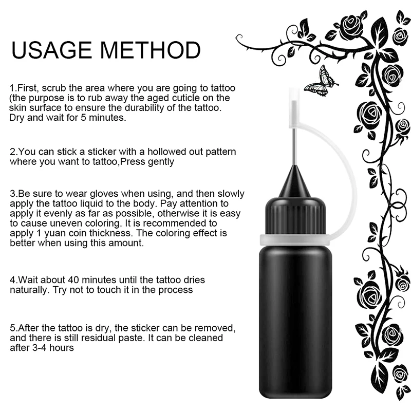 Сок естественным образом окисляется, образуя татуировку, эффект естественный и стойкий.