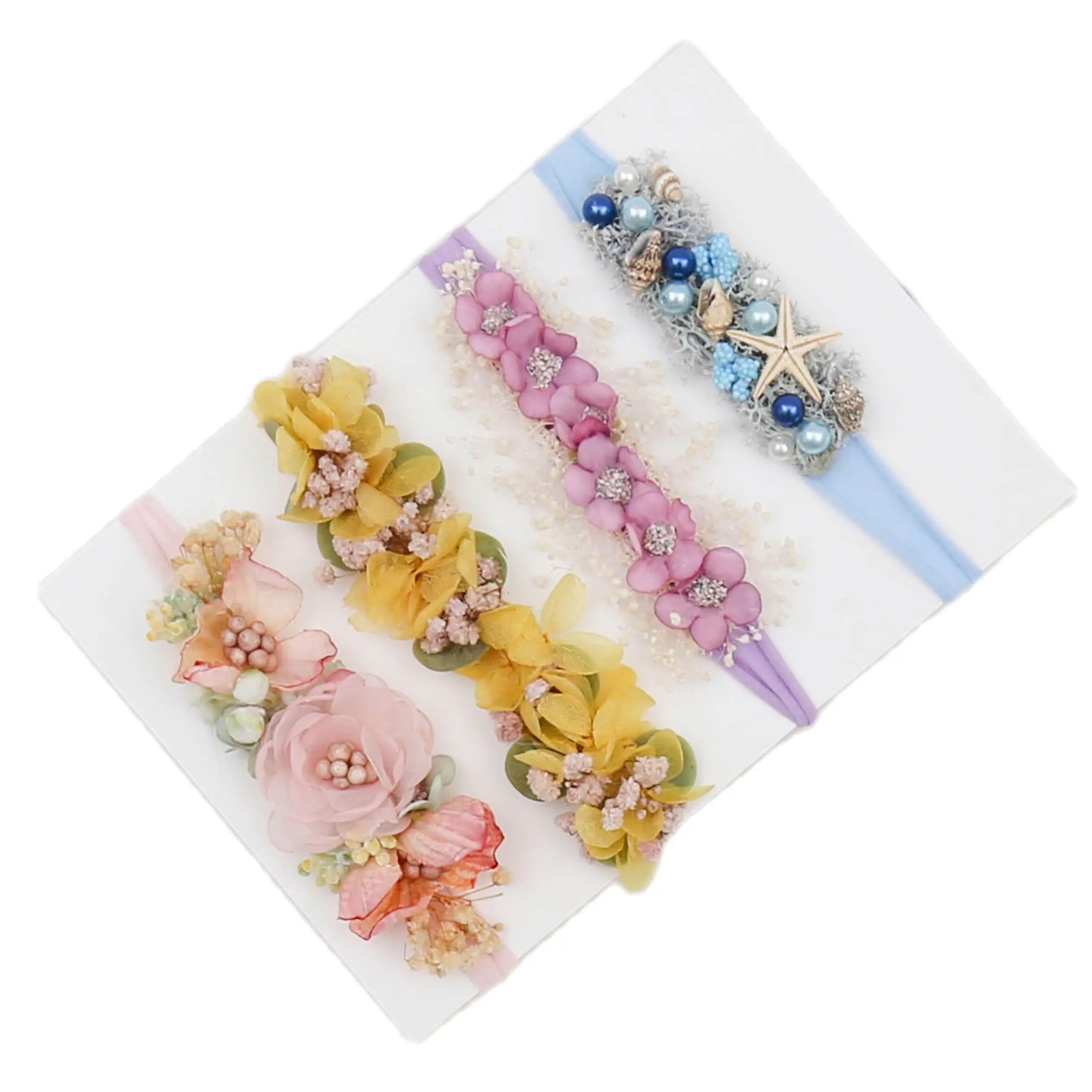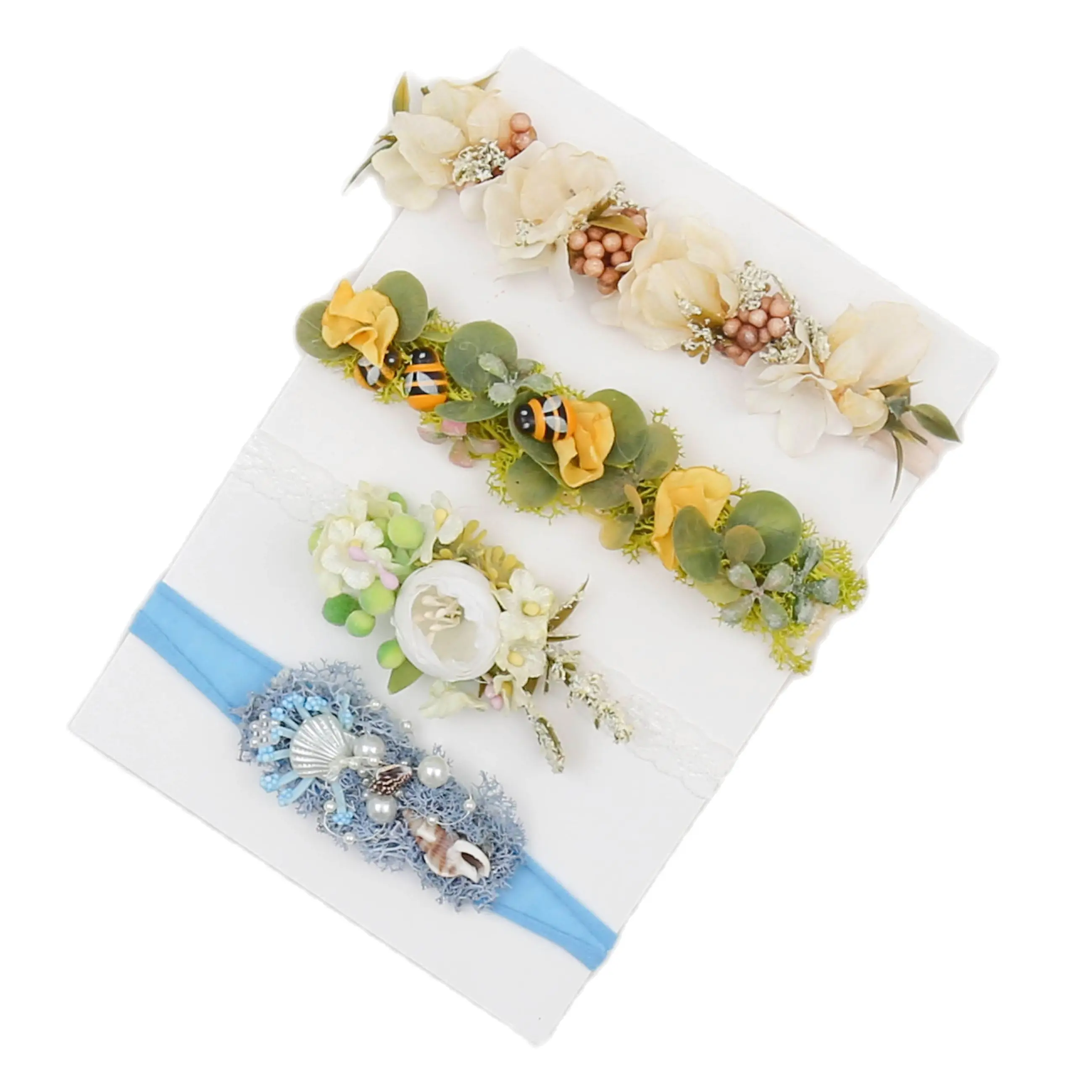 Повязка на голову для новорожденного ребенка с цветком, окруженной великолепными природными элементами. И прилагается tno органический Плетеный обруч tieback.