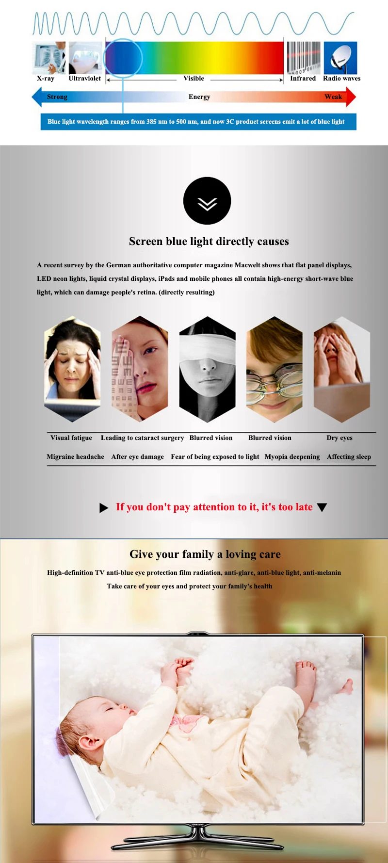 【 Модернизированный анти-синий светильник Особенности 】 Новые синий светильник технологии фильтрации с 7-слойная многослойный дизайн, с защитой от УФ-светильник производительность, UV400 защита, защита от излучения, анти-статические помехи, снимает усталость глаз и помогает лучше спать.