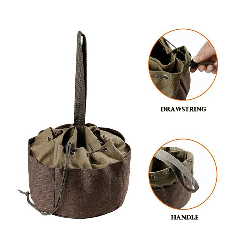 Большая вместительная сумка-тоут для садоводства, обновленная многокарманная сумка для хранения инструментов, круглая сумка-ведро, кожаная сумка с парашютом, сумка для хранения инструментов