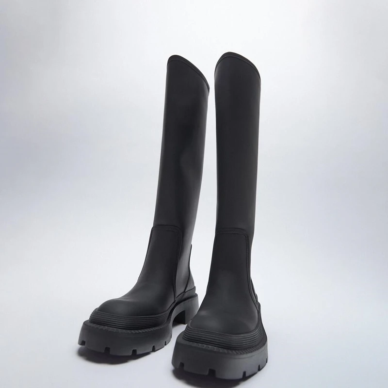 Дизайнерские Сапоги до колена; Повседневная женская обувь; Новинка 2021 года; Зимние сапоги «Челси» на среднем каблуке; Модные сапоги-гладиаторы на массивном каблуке; Mujer