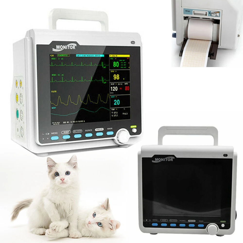 CMS6000-VET Veterinary Animals Patient Monitor The monitor has abundant monitoring functions and is used for monitoring of adult, pediatric and neonate. User may select different parameter configurations according to different requirements. It displays real-time data and waveform by 8'' TFT color LCD, and up to 8-channel waveform and all monitoring parameters can be displayed simultaneously. 48mm thermal printer is optional. In addition, it can be connected to the central monitoring system via wired/wireless network so as to form a network monitoring system.