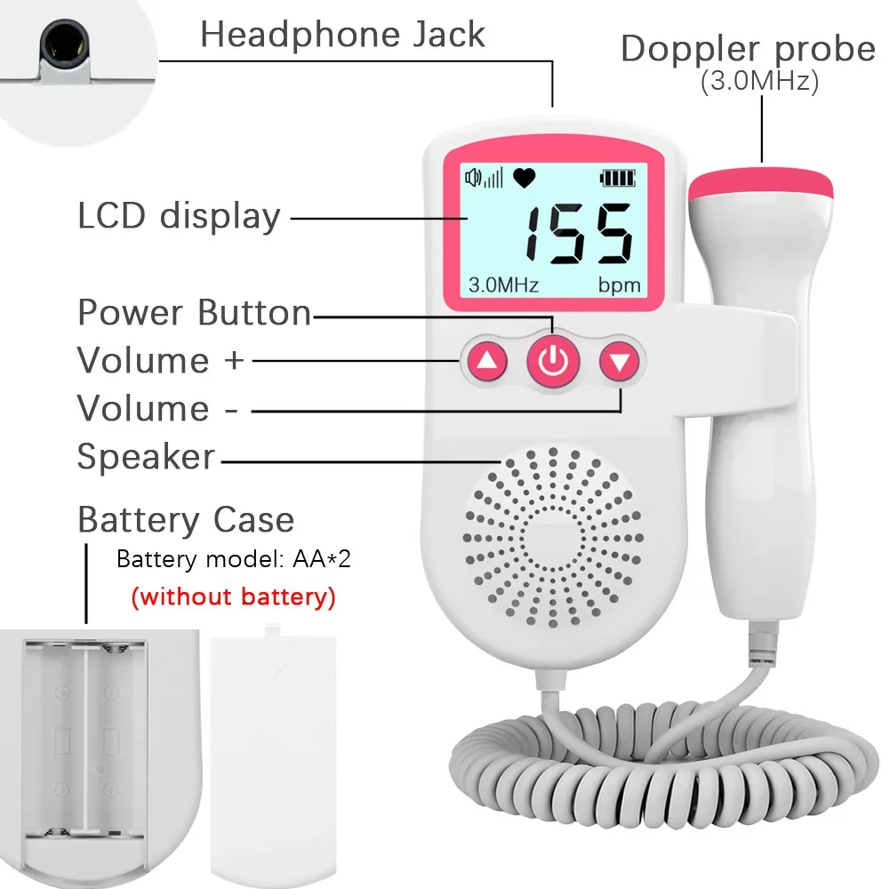Диапазон измерения сердечного ритма плода: 60BPM ~ 210BPM (BPM: бит в минуту)