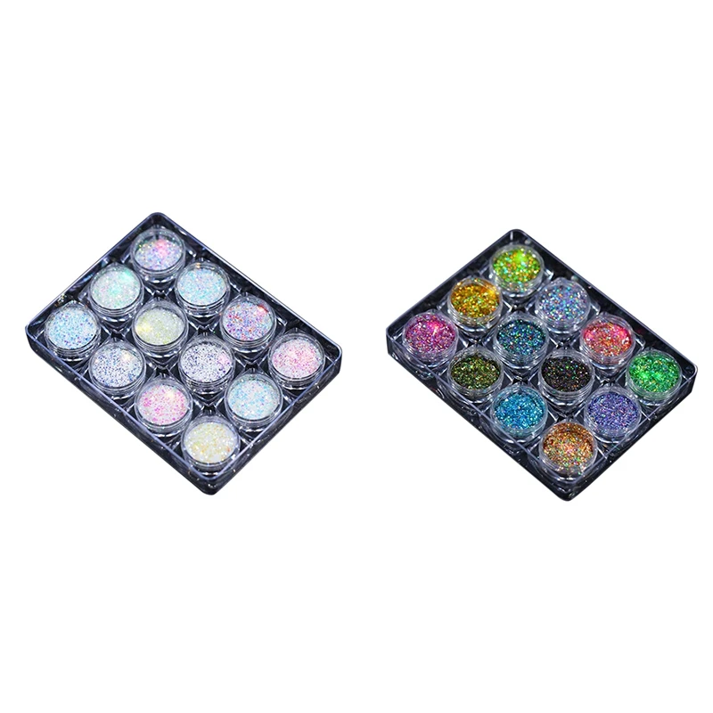 2 Коробка 12-цветной лак для ногтей кисть для нанесения пудры: 1 x стиль 2 & 1 x стиль 1