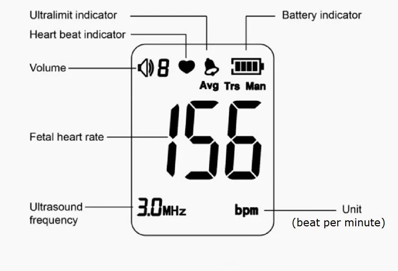 * После того, как вы услышите обычный звук сердца плода, значение FHR будет отображаться на экране в режиме реального времени