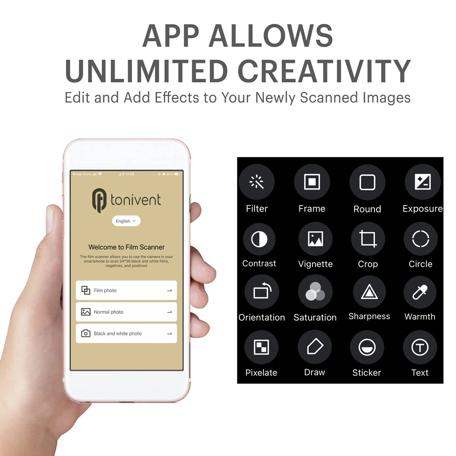 Переживайте старые фотографии-мобильный сканер TON169 позволяет сканировать и воспроизводить старые фильмы и слайды 35 мм с помощью камеры смартфона. Он совместим с 35m слайдами и негативами.