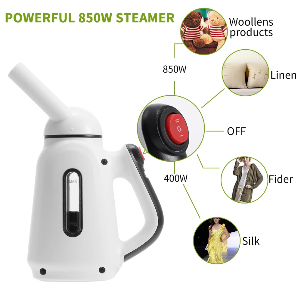 Этот ручной отпариватель для одежды имеет мощный отпариватель мощностью 850 Вт, оснащенный баком для воды большой вместимости и подогрев занимает всего 60 секунд или меньше.
