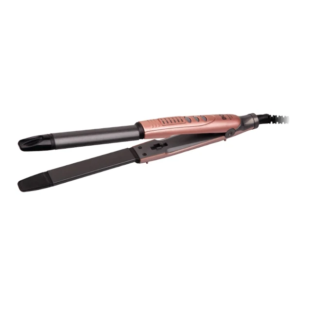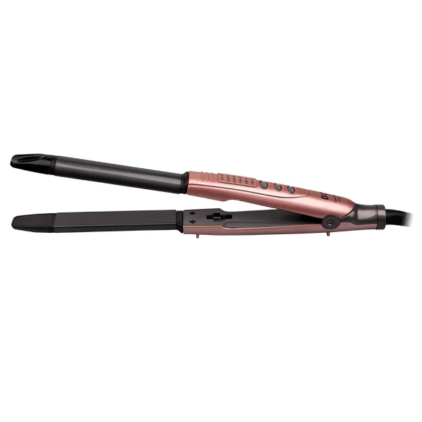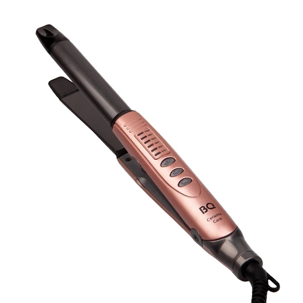 Выпрямление и завивка. Мощность 40 Вт. Температура нагрева от 100°С до 200°С (6 режимов). Время нагрева 60 сек. Керамическое покрытие рабочей поверхности. Вращающийся шнур на 360°. Петля для подвешивания. Длина шнура 1,8 м. Вес 270 г