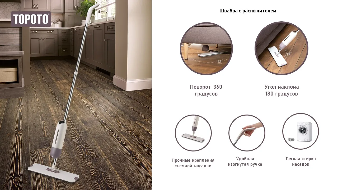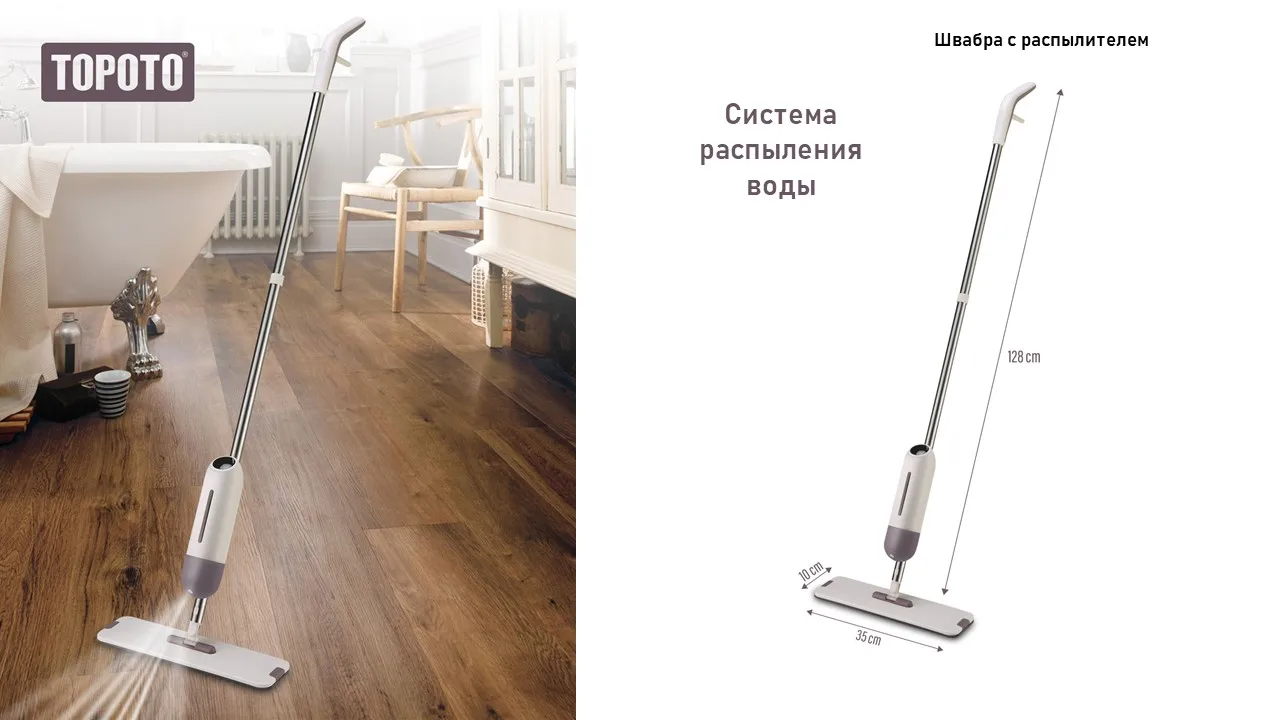 Хотите сделать мытье полов легким, непринужденным занятием, – покупайте швабру Topoto с распылителем и сменными насадками.