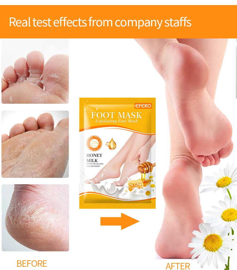3. Носите маску для ног, мы рекомендуем носить пару нормальных носков снаружи, чтобы обеспечить достаточный контакт с эссенцией.