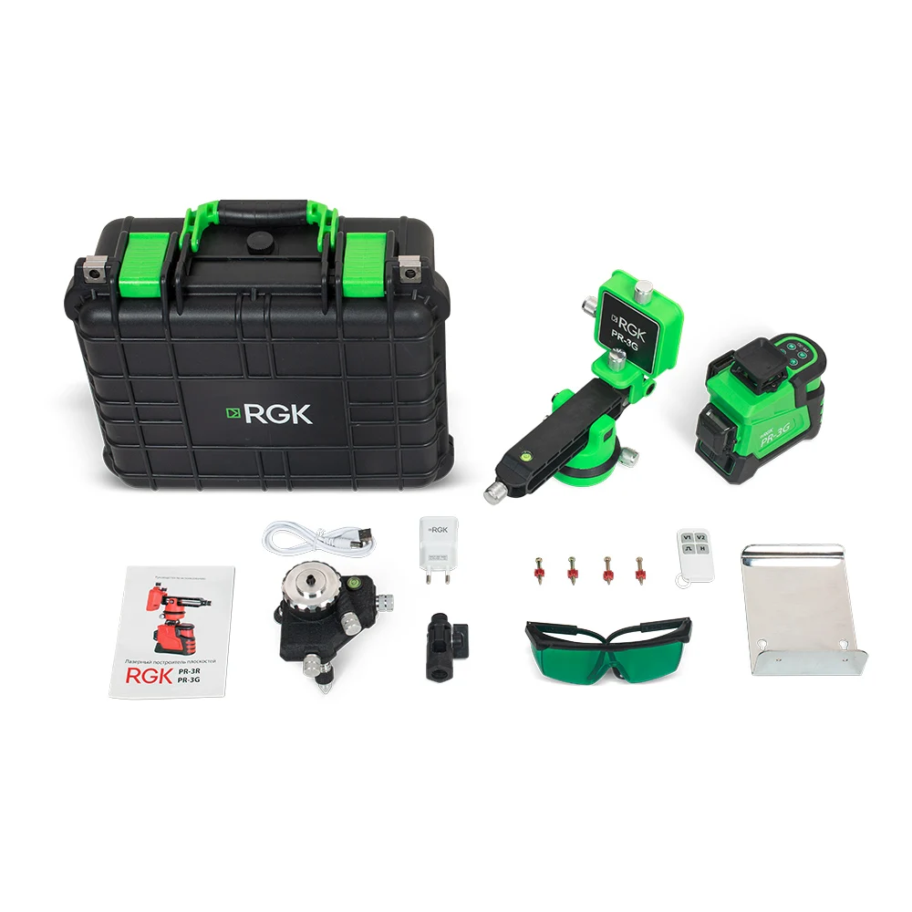 100-Day Buyer ProtectionDescriptionЛазерный уровень RGK PR-3G проецирует горизонтальную и 2 вертикальные линии. Лазерный луч зеленого цвета хорошо различим при ярком солнечном освещении и на поверхностях темного цвета.