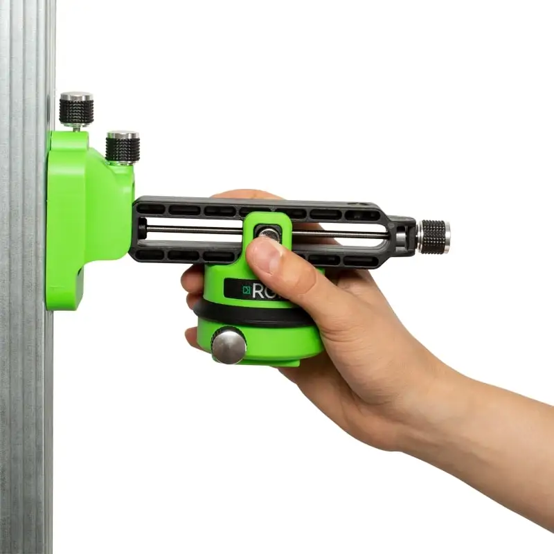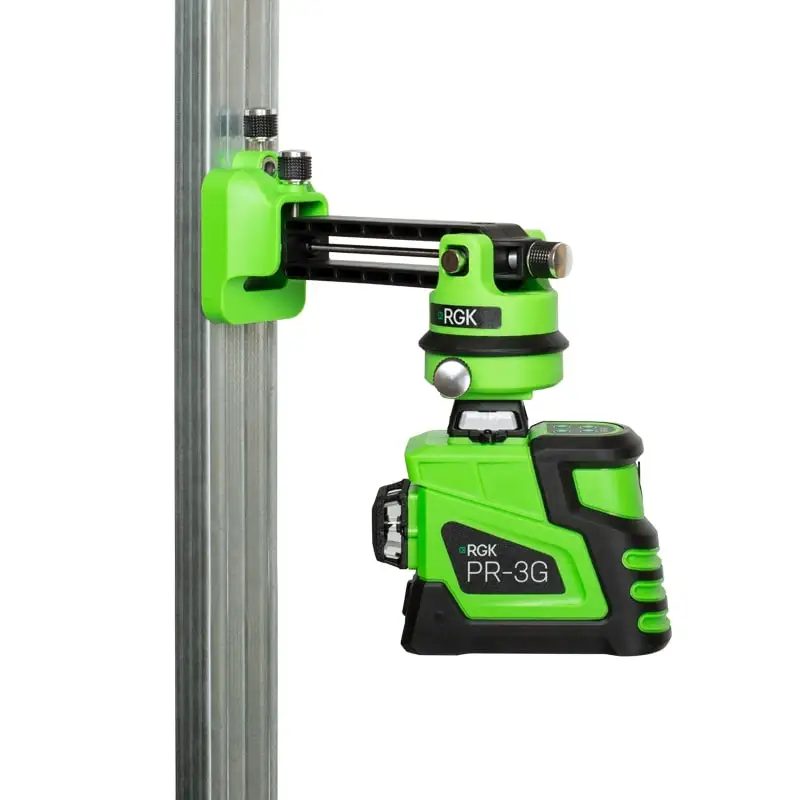 Съемное магнитное крепление обеспечит установку уровня на заданной высоте на вертикальных металлических поверхностях. Плавная регулировка поможет выставить лазерный нивелир RGK PR-3G на нужном расстоянии от стены. Отверстие для шурупа оснащено крепежным винтом, что обеспечивает устойчивость прибора
