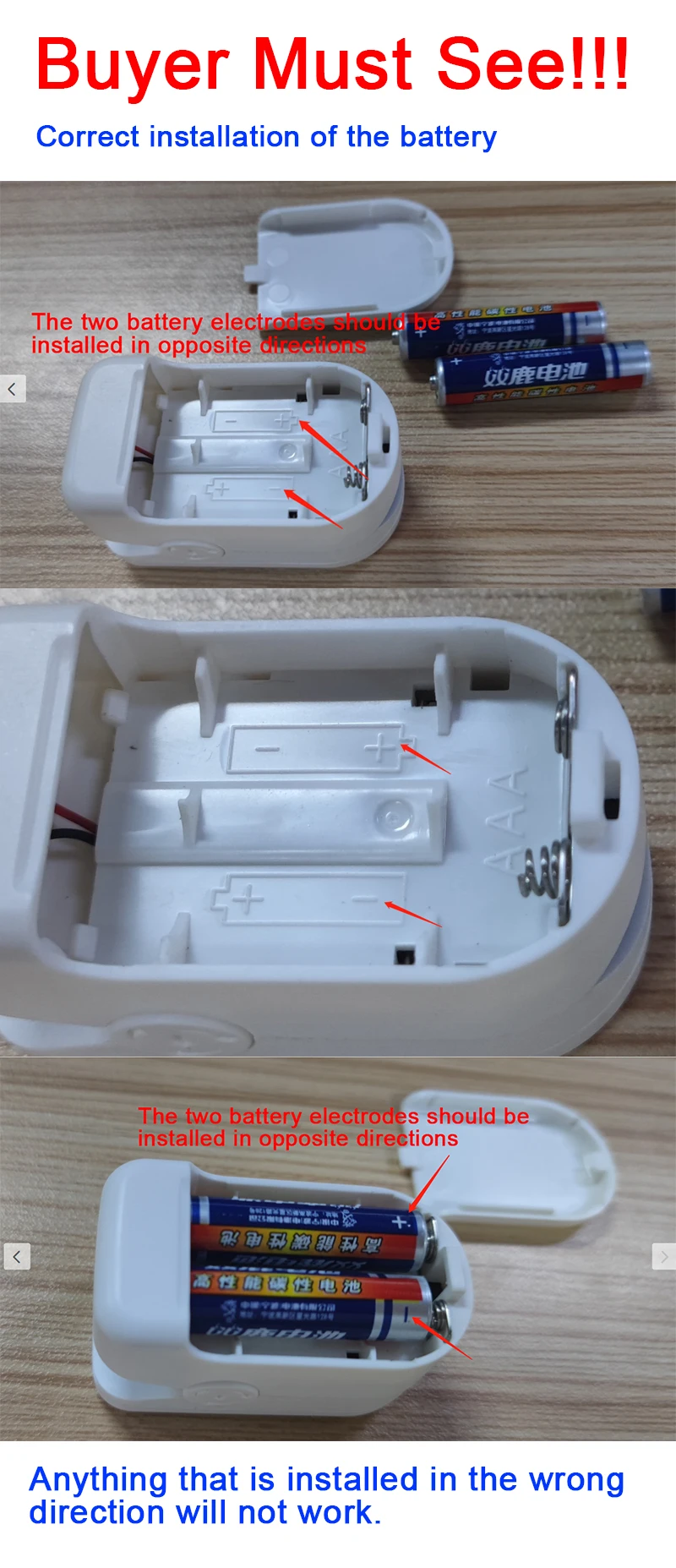 Батарея Модель: 2*1,5 V (2 ААА щелочные батареи, продукт не включает батарейки)