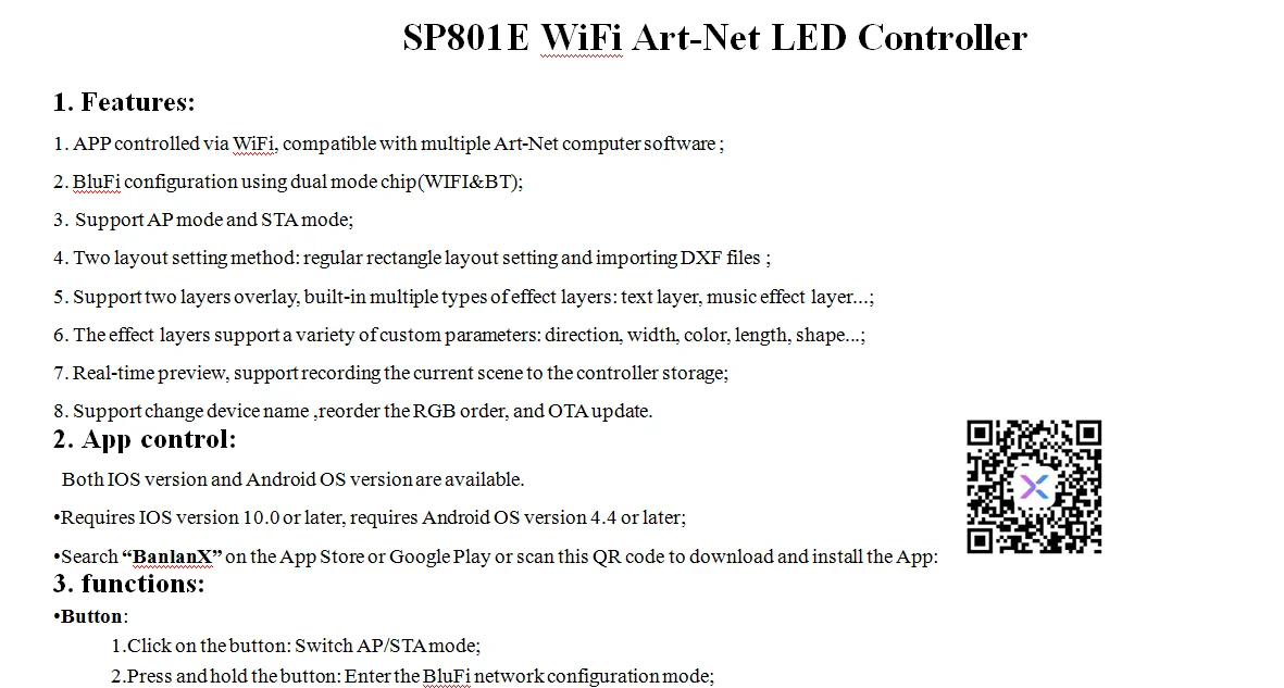 1. Приложение управляется через WiFi, совместимо с несколькими компьютерными программами Art-Net;