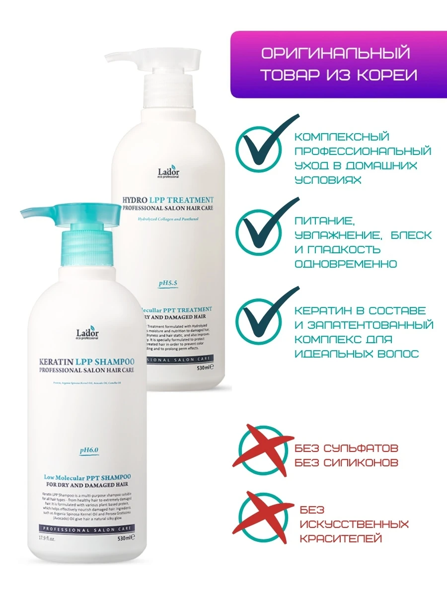 1. Протеиновый шампунь для поврежденных волос Keratin LPP Shampoo, 530мл
