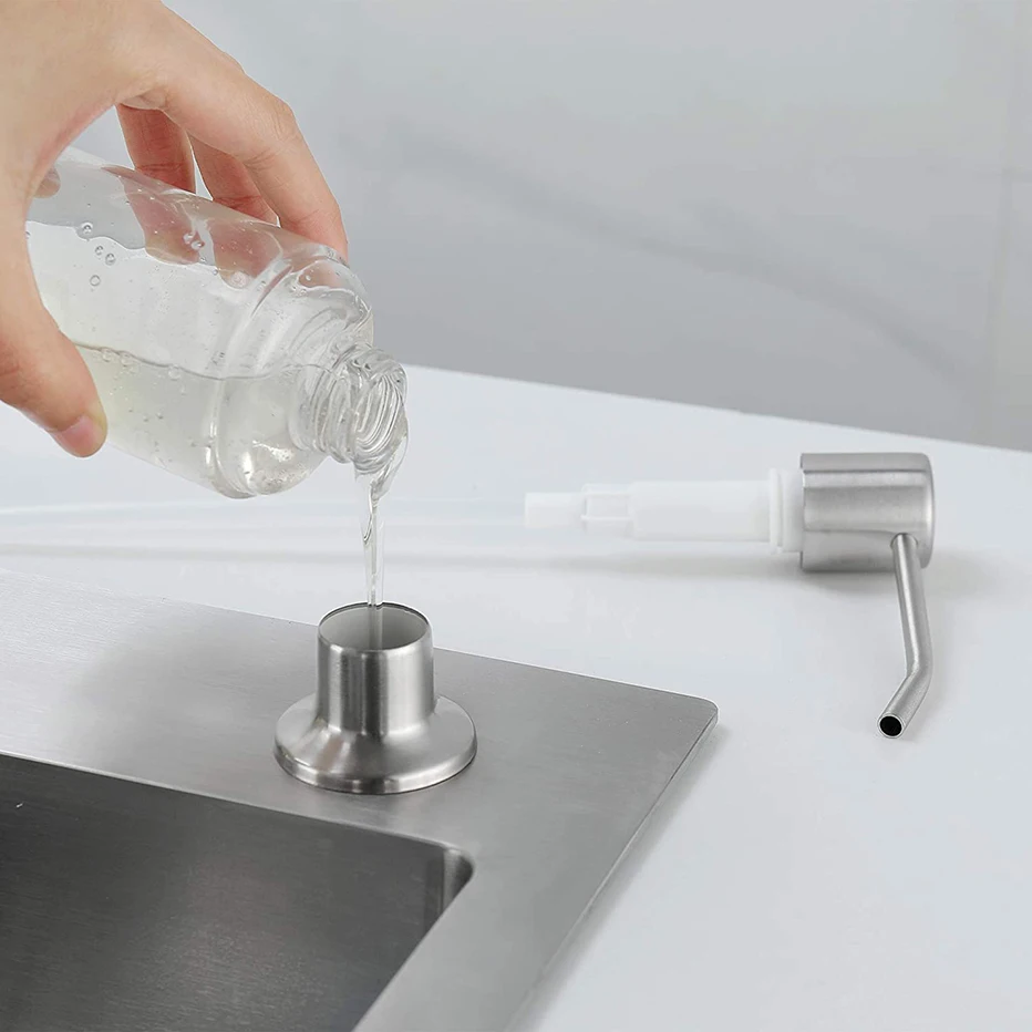 Диспенсер для мыла из матового никеля, кухонная раковина, столешница, головка насоса, контейнер для мыла с удлинительной трубкой, встроенная стальная бутылка для мыла