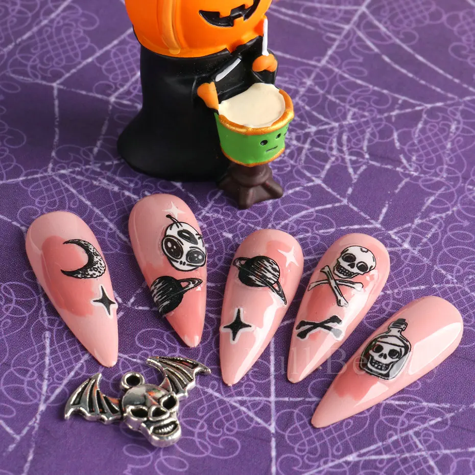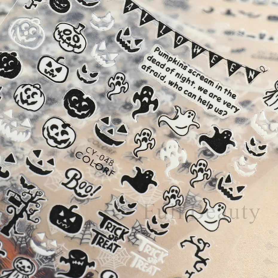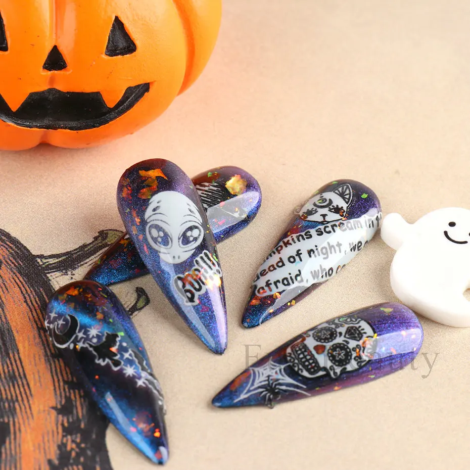 Дизайн: милый дизайн слайдера для дизайна ногтей на Хэллоуин и Рождество, страшный дизайн ногтей DIY