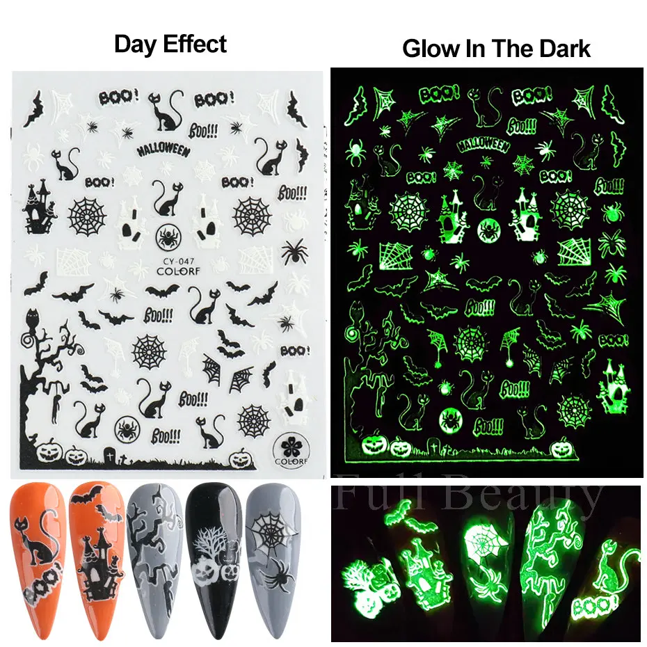 Стиль: 3D светящиеся наклейки для ногтей