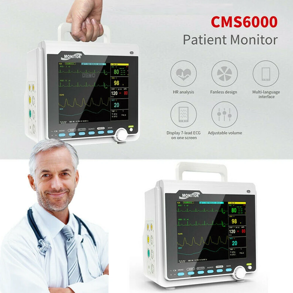 CMS6000 Монитор пациента Монитор имеет множество функций мониторинга и используется для мониторинга взрослых, детей и новорожденных. Пользователь может выбрать различные конфигурации параметров в соответствии с различными требованиями. Он отображает данные в реальном времени и форму волны 8 ''TFT цветной ЖК-дисплей и форму волны до 8 каналов и все параметры контроль может быть отображена одновременно. 48 мм термальный принтер опционально. Кроме того, он может быть подключен к центральной системе мониторинга через проводную/беспроводную сеть, чтобы создать систему мониторинга сети.