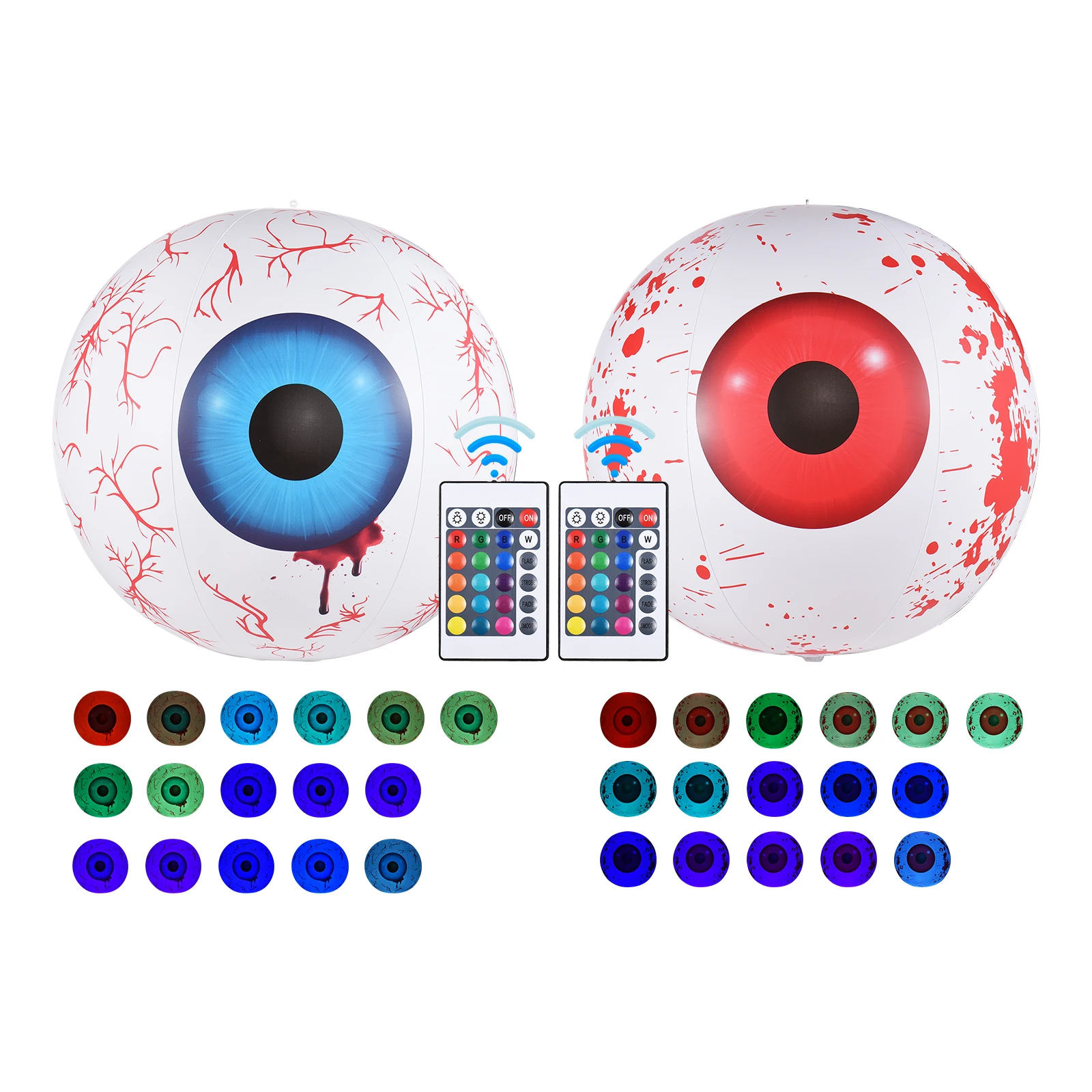 Надувные Глазные яблоки на Хэллоуин с светодиодный подсветкой, идеально подходят для использования в помещении или на открытом воздухе, поместите Глазные яблоки на передний двор/бар/сад/патио/балкон или где бы вы ни находились. Наслаждайтесь вечерние Хеллоуин с вами семьи и друга.