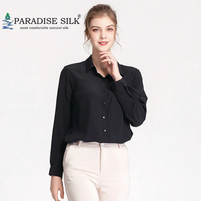 Женские блузки из натурального шелка, рубашка с длинным рукавом, комфортная посадка, 100% Шелковая креповая блузка, Размеры M L XL XXL XXXL