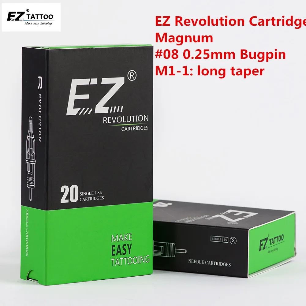 -Совместимость со всеми картриджными машинами и захватами EZ. -- 100% EO газ стерилизован и индивидуально упакован. -- Иглы изготовлены из нержавеющей стали 316 медицинского класса. -- Пластиковые наконечники медицинского класса. -- 20 игл в коробке. -- Доступно более 100 конфигураций.
