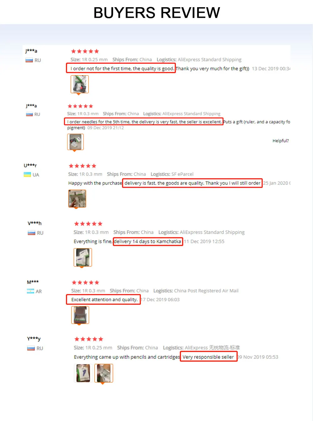 Вопрос и ответы: 1. Какое оборудование может использовать эти шприцы? Подходит для BMX МАРКИ машин, которые продаются в нашем магазине. P300/ЛС-100/CQ003/LW002. .. 2. Какой диаметр иглы? 1R--0.16 мм 1R--0.18 мм 1R--0.2 мм 1R--0.25 мм 1R--0.30 мм 1R--0.40 мм 1R--0.50 мм 2R--0.40 мм 3/5/7/RL--0.25 мм 3/5/7RS--0.25 мм 3/4/5SF--0.25 мм 5/7MG--0.25 мм 12P--0.25 мм 3. Какая модель мне выбрать? 1R: Круглый иглы, костюм для тонкий, подводка (самый популярный размер) 2R 3RL: для подводка для глаз 3RL 5RL 7RL: толстая подкладка, для противотуманных фар для бровей, губ кисть для теней RS: кисть для теней, бровей F /M1: для губ раскраска 12P:MTS 4, сколько времени потребуется, чтобы доставить? Обычно занимает 2-5 недель. Для России, быстрая скорость в течении 10 дней!